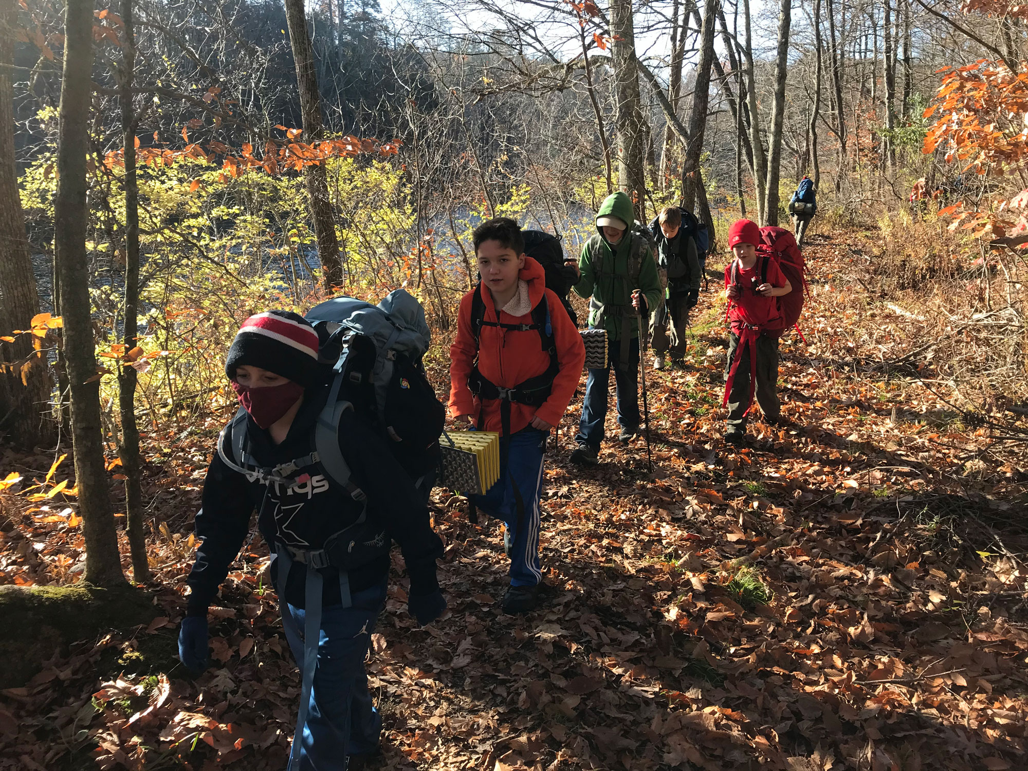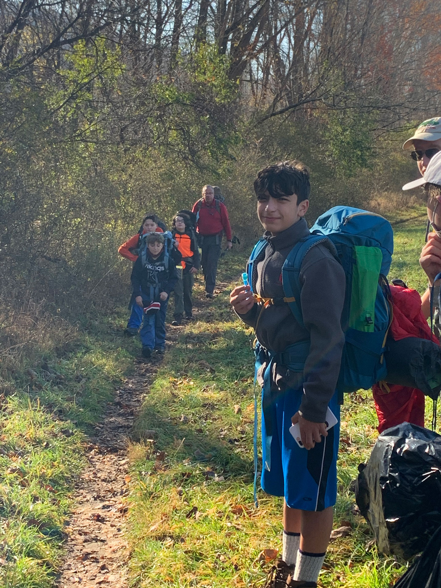 We had a total of 12 scouts and 7 adults. Food, water and equipment for two days of hiking on our backs.
